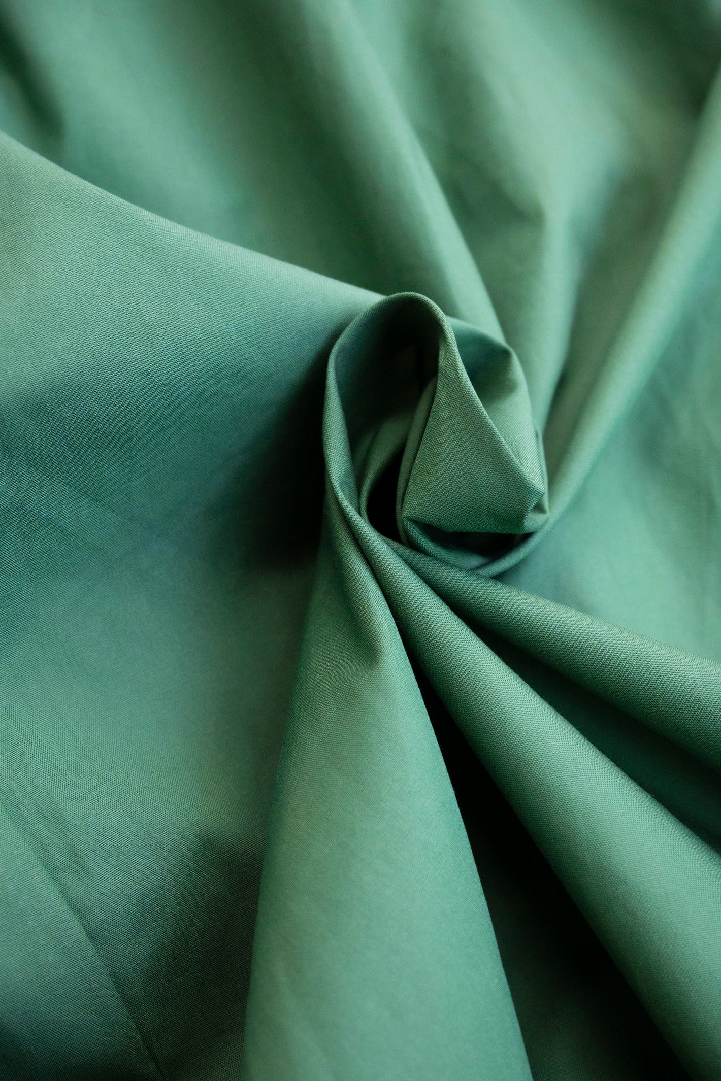 首元をすっきり見せてくれるバンドカラー、パールボタンをあしらったIラインのシルエット。