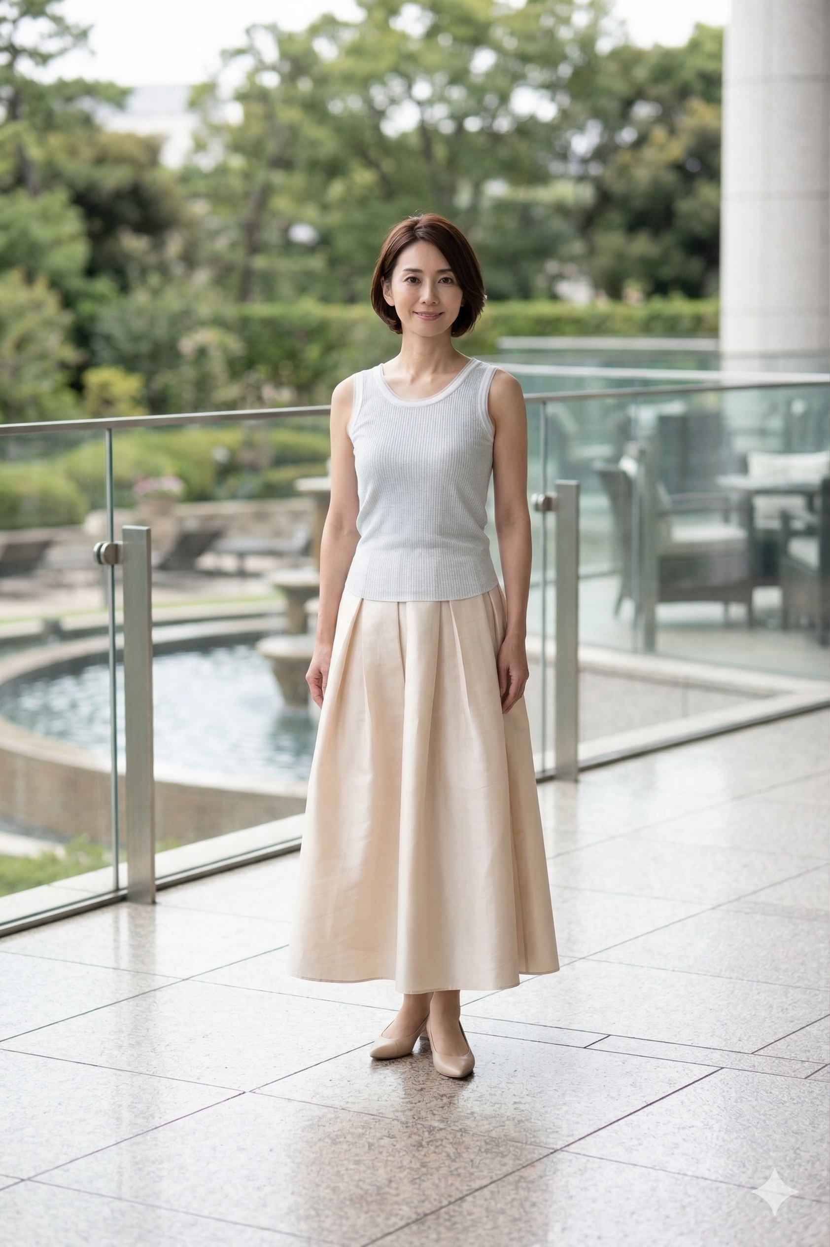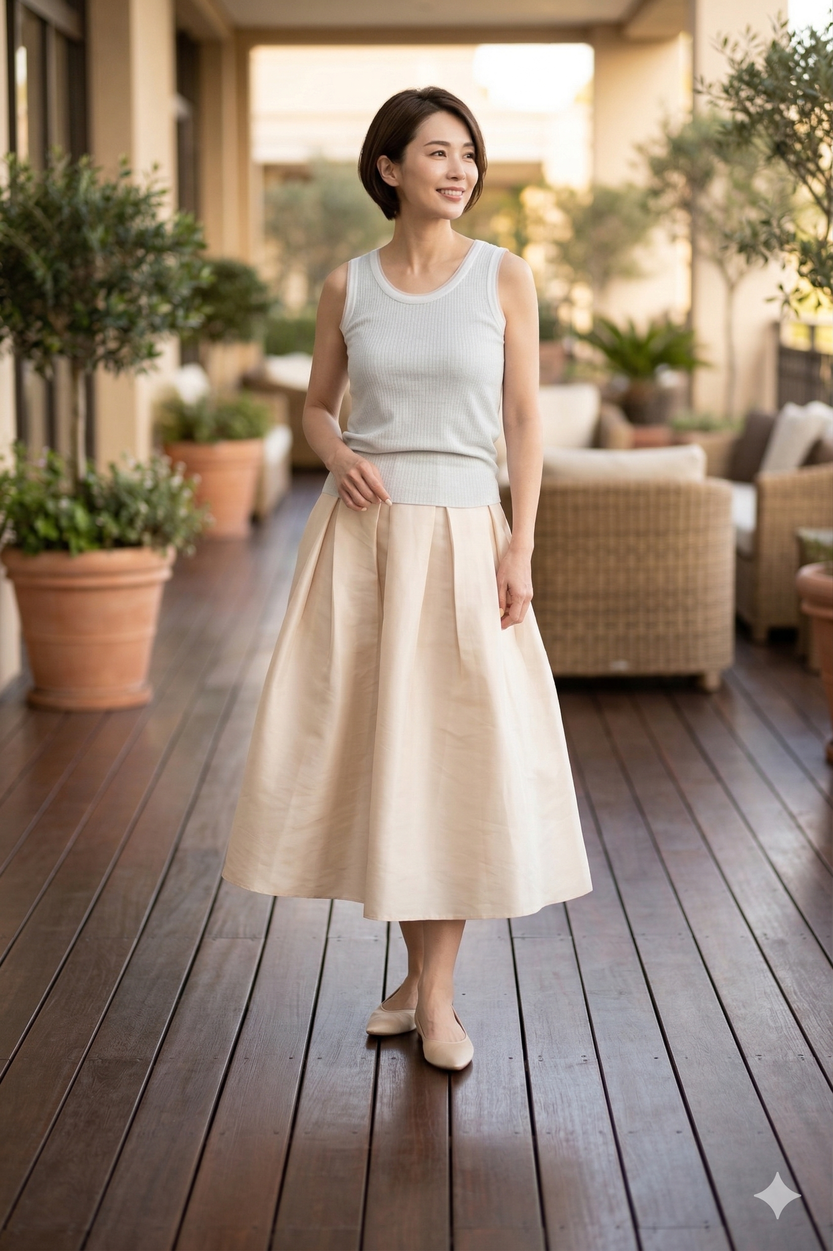 ラメ生地とさりげないチュールがポイントのタンクトップ